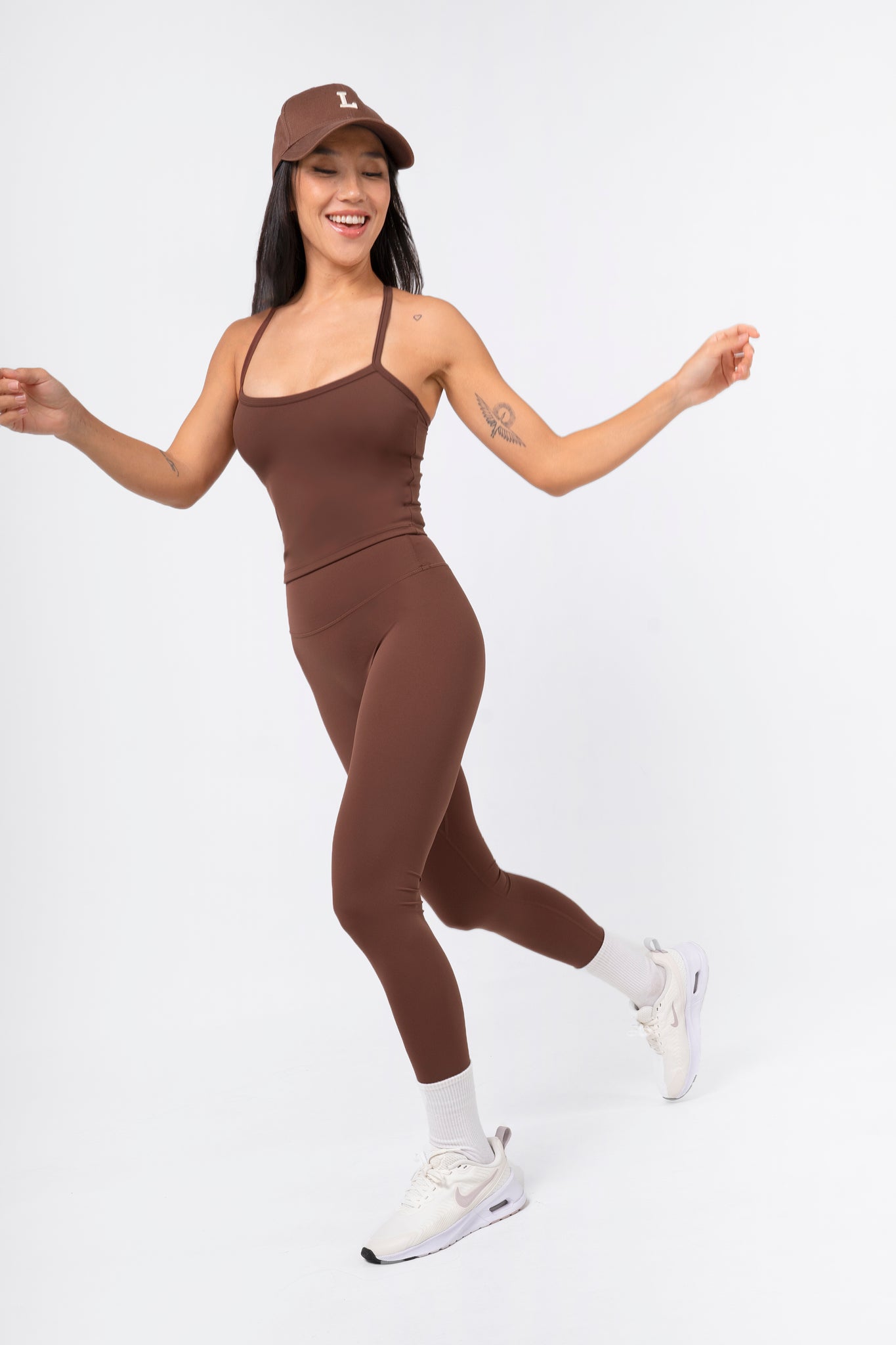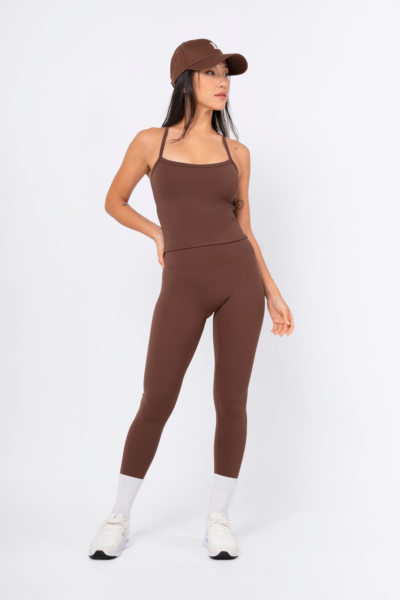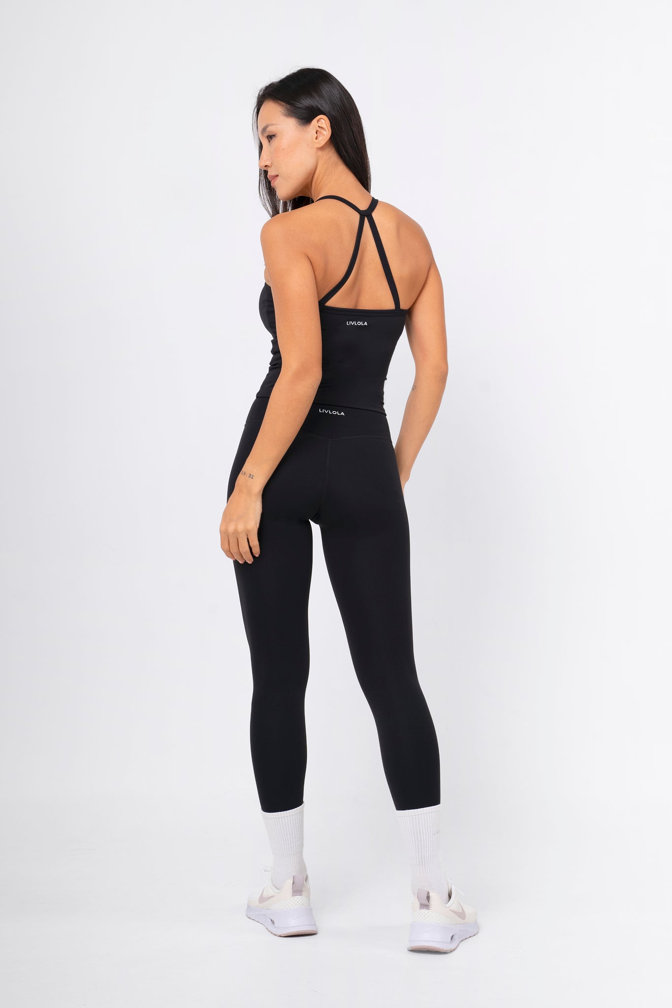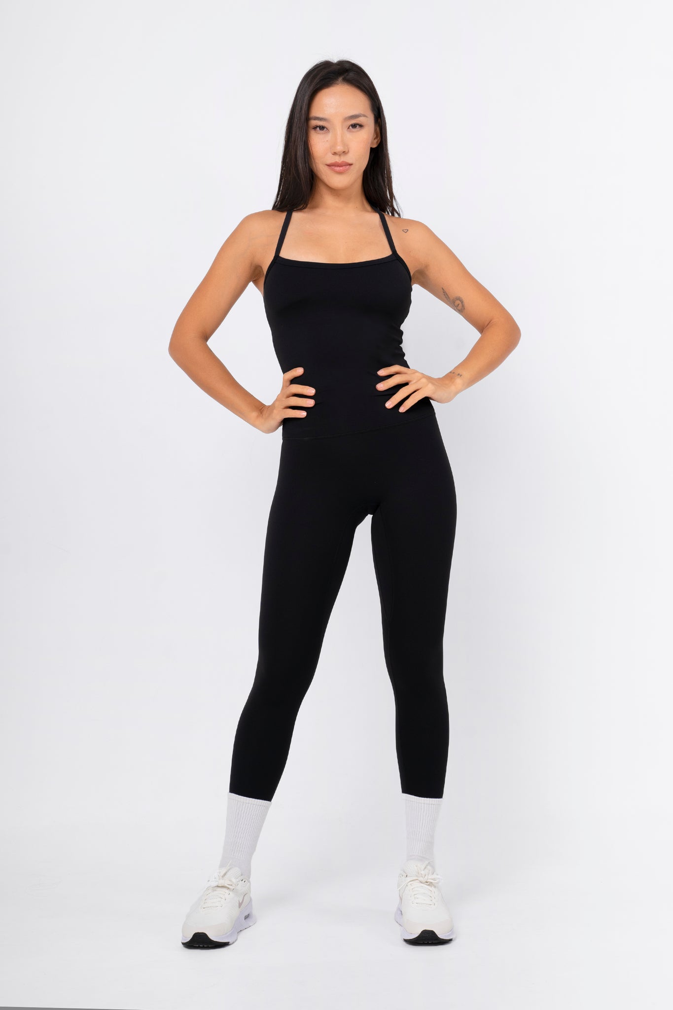 - Full length bra tank, on-trend straight cut neckline and strappy back for style