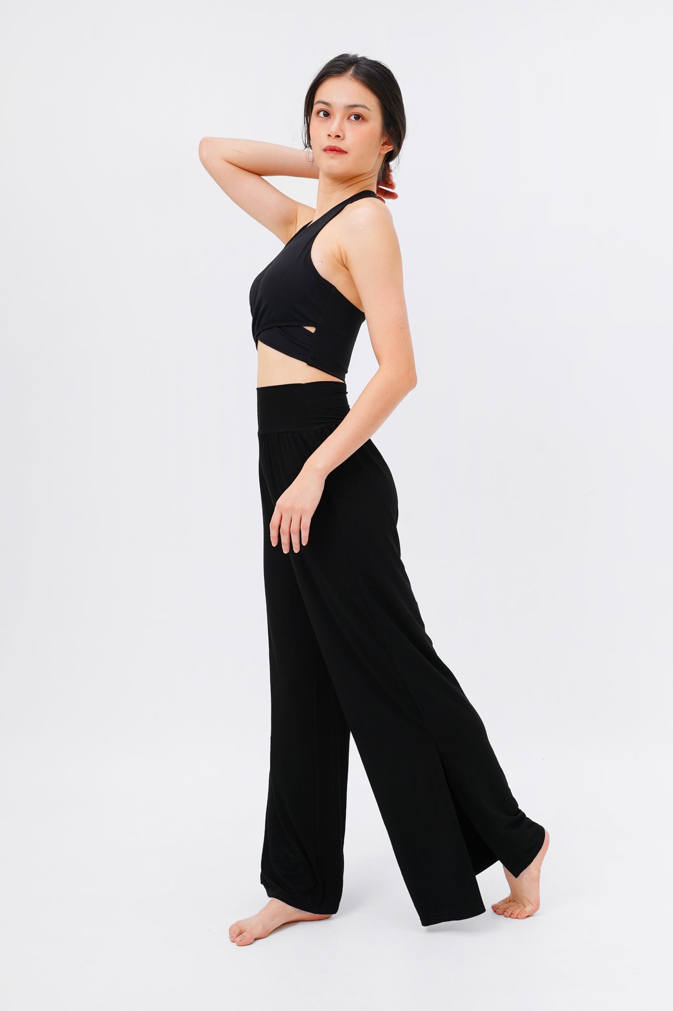 - High-waist drapey pants with wide waist band to keep you covered