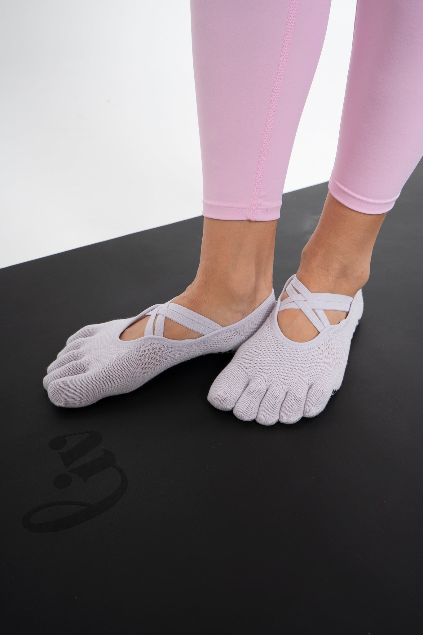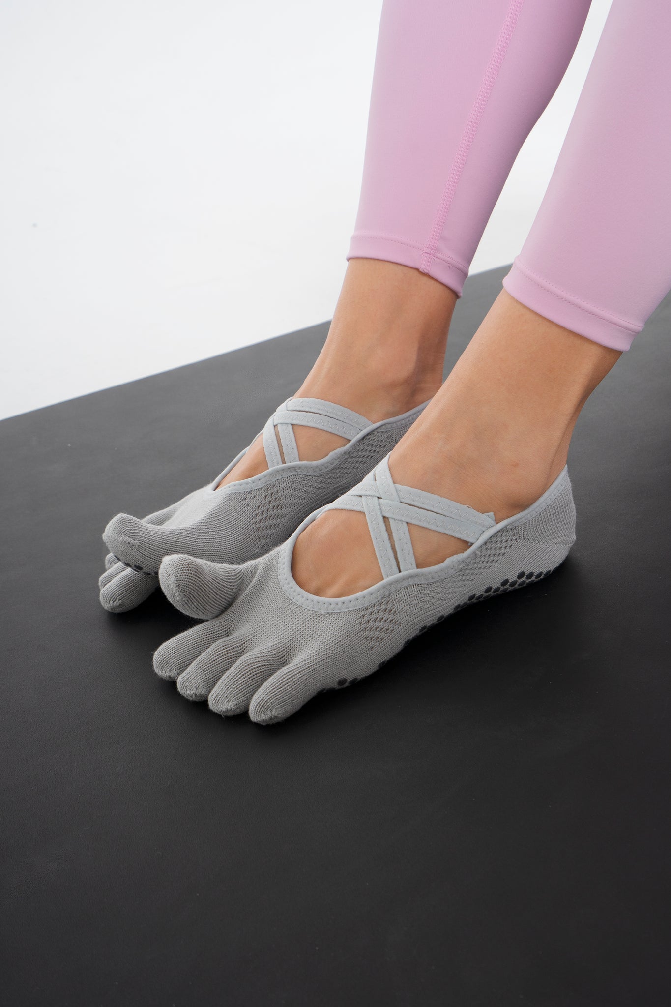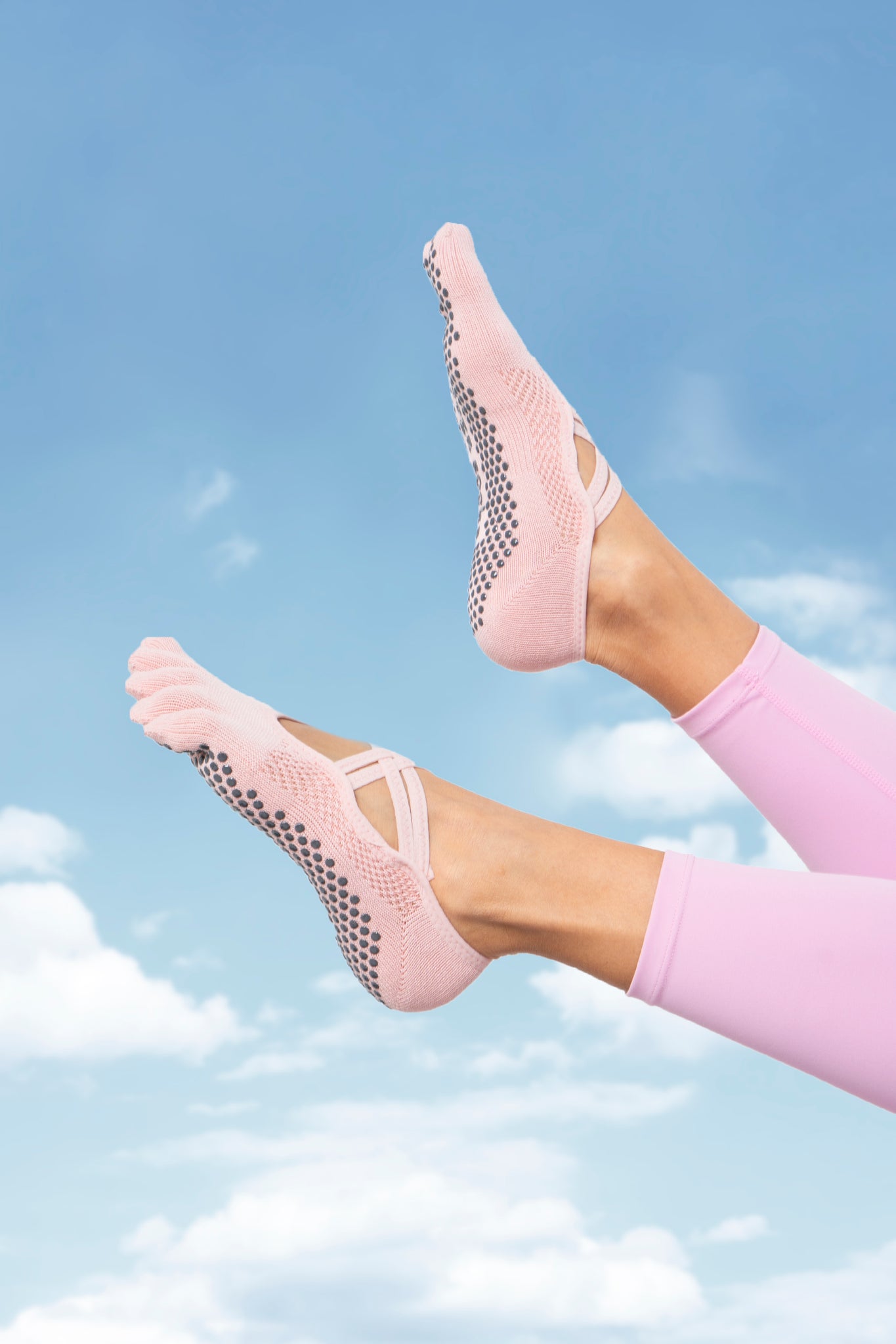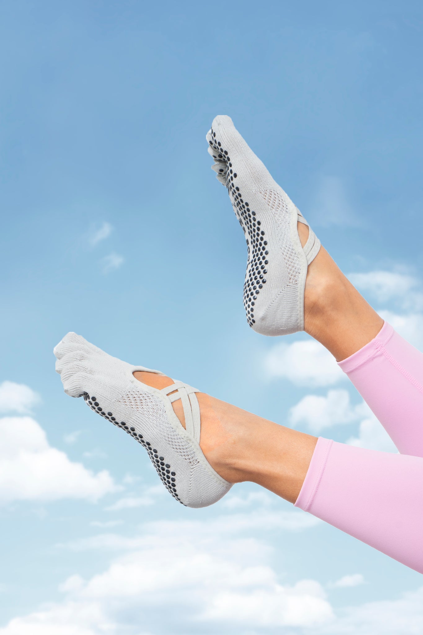 Beckon your inner ballerina with styles that’s on pointe with the Pointe Non Slip Full Toe Grip Socks. Besides being the cutest thing you ever did see, Pointe's elastic criss cross design keeps sock snug on foot through all activities and is the perfect grip sock for yoga, Pilates and barre. Features extra grippy non slip sole for secure footing on any surface. Made with super soft cotton in a variety of colorway to suit your every mood.