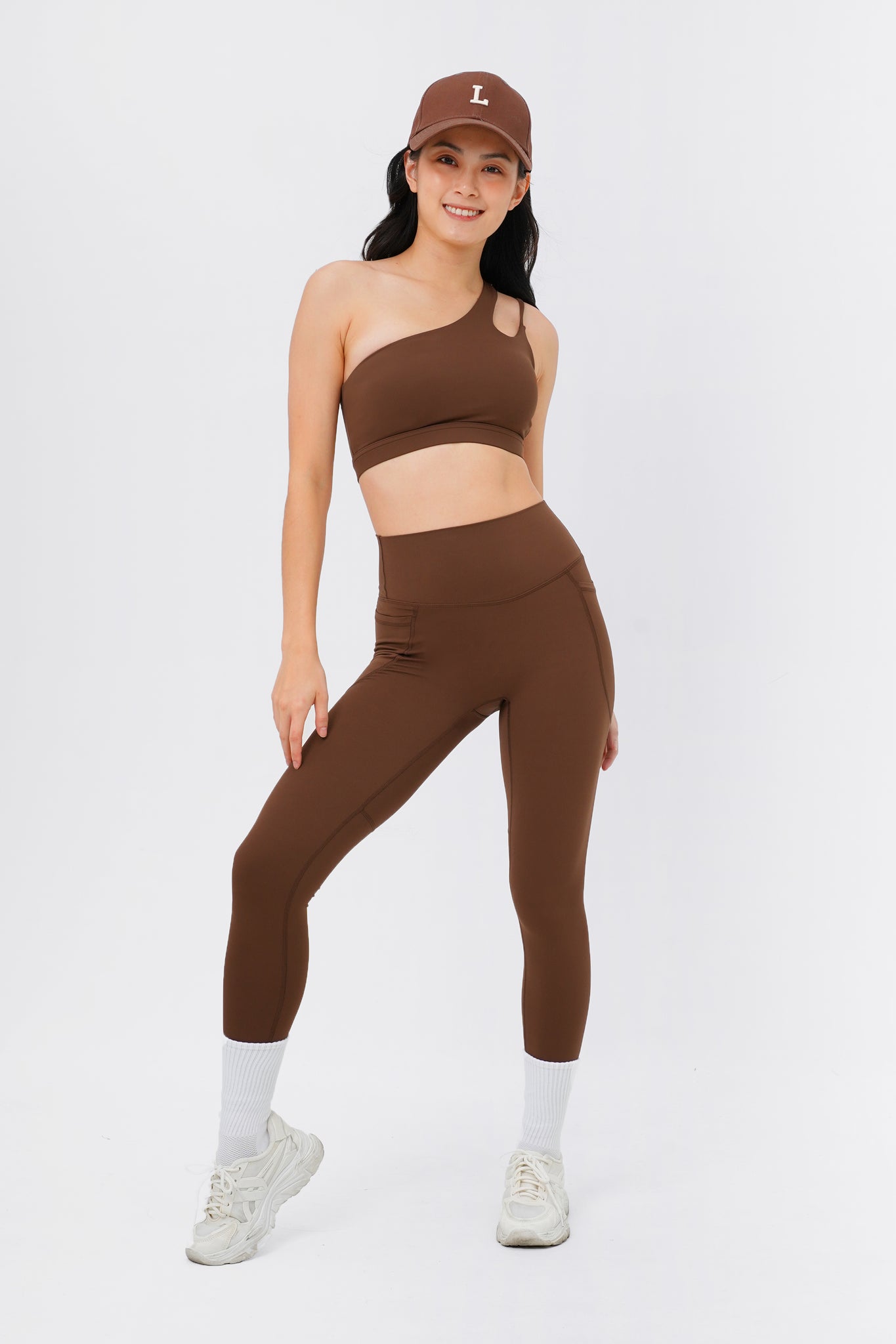 Sporty and sophisticated– what else could you possibly ask for in a trendy bra? This seamless, one-shoulder silhouette makes a statement whether you wear it out solo or synced up with our matching Sweet Talker Pocket Biker Shorts to spin class. It is promised to stay put with the right fit.