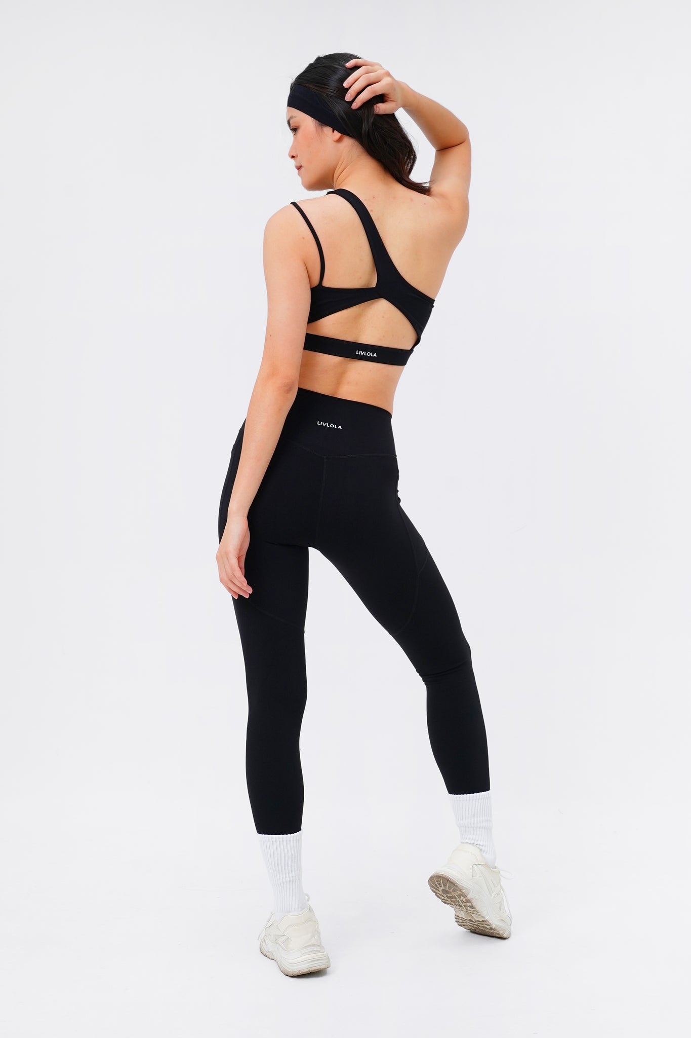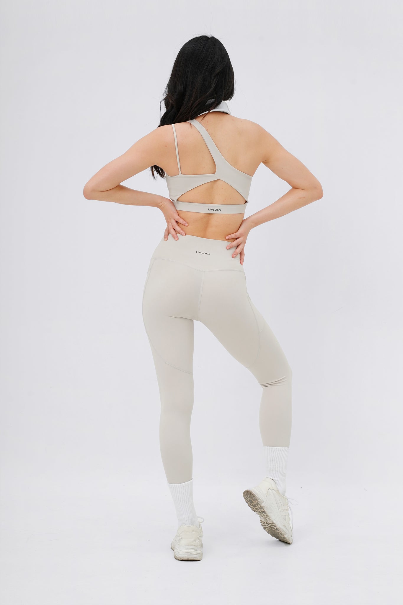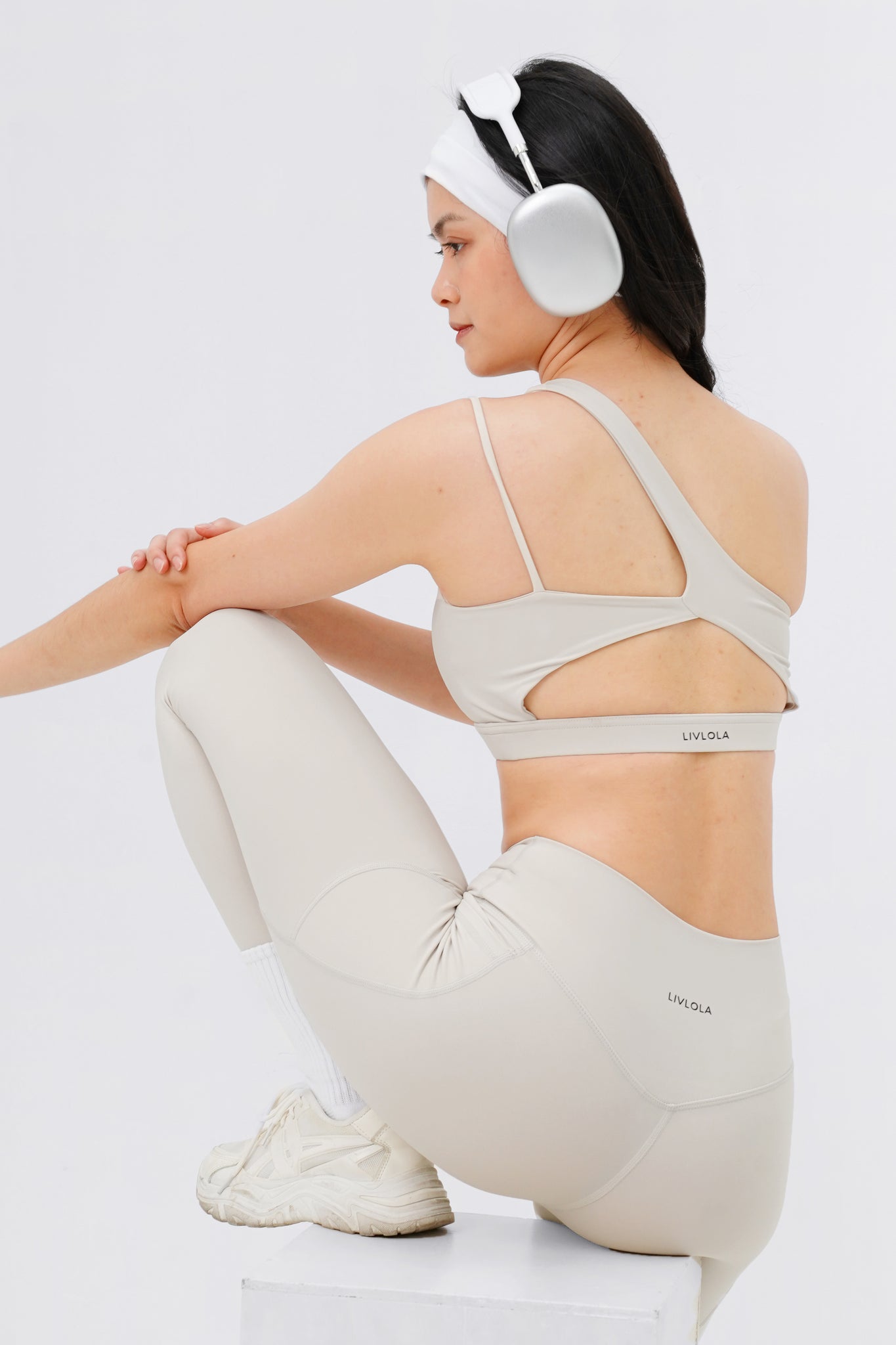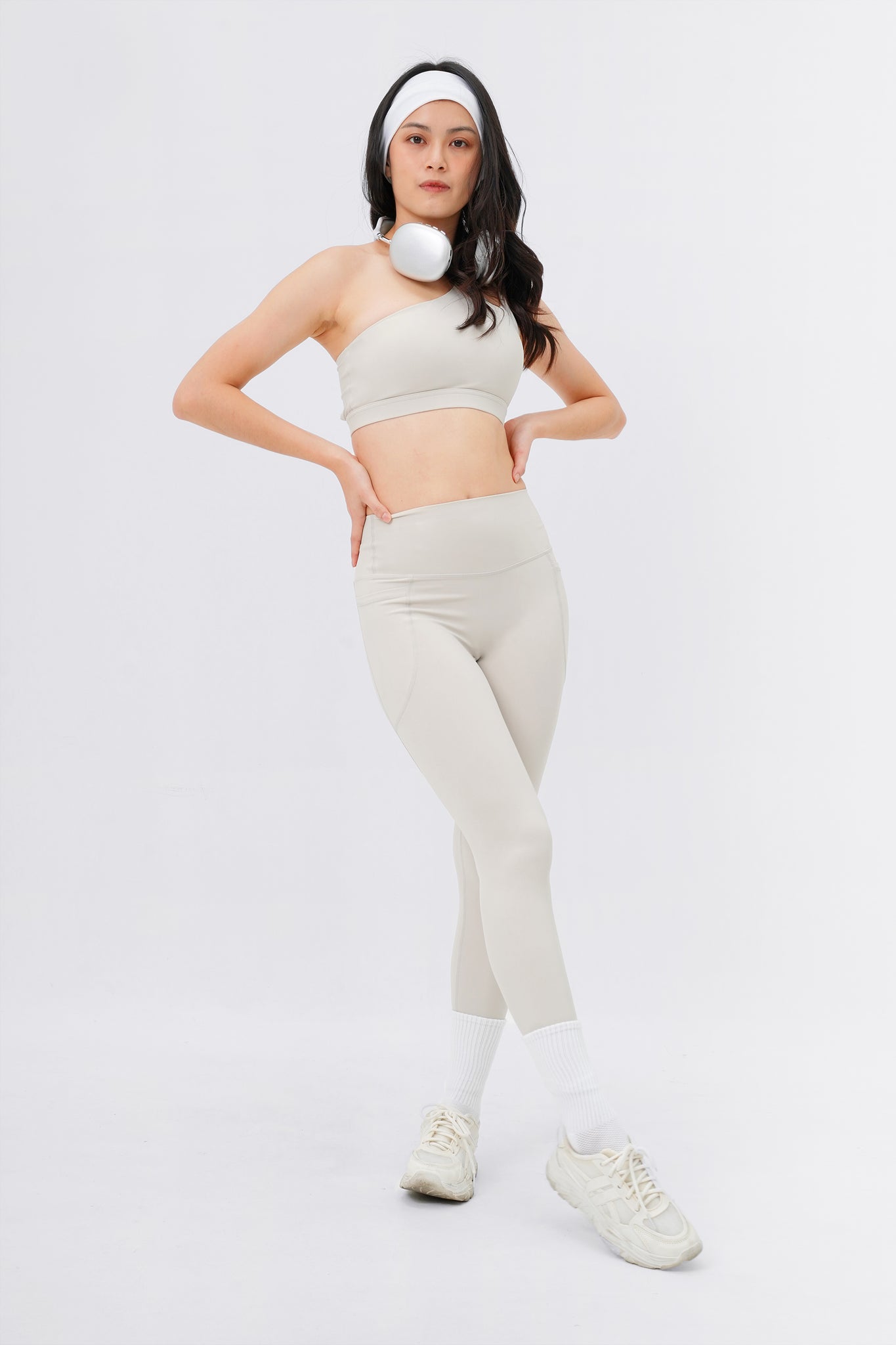Sporty and sophisticated– meet the trendiest set for your next Pilates session! This seamless, one-shoulder silhouette makes a statement whether you wear it out in a matching set or dressed down for a casual street look. Comes with Sweet Dreamer One Shoulder Bra in light support and Sweet Talker Pocket Leggings that is uber sculpting and compressive. This set is perfect for pilates, hot yoga, hard classes and everyday loungewear.