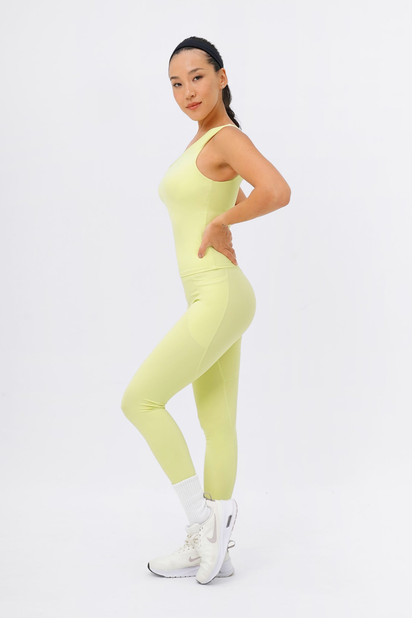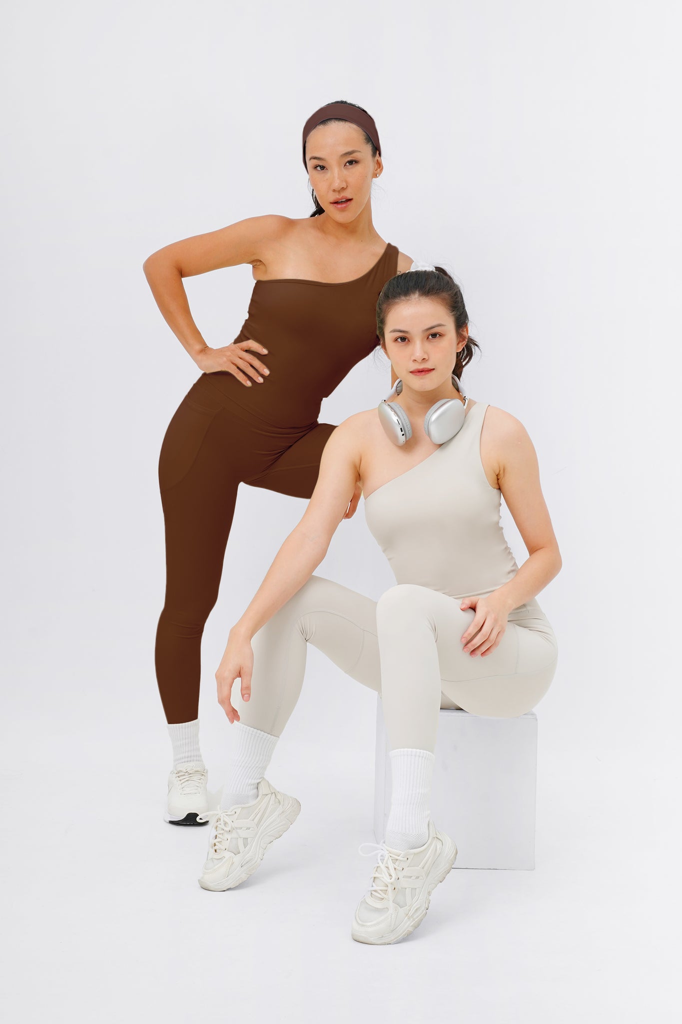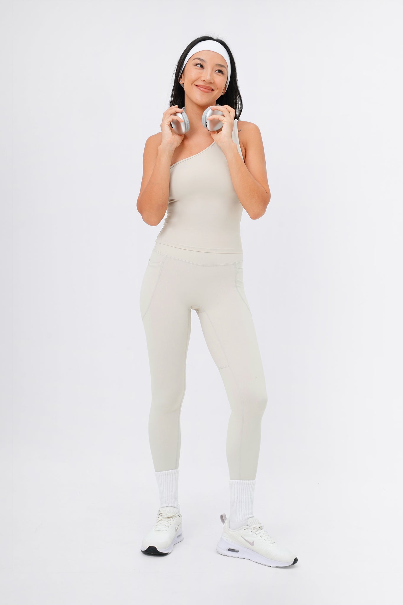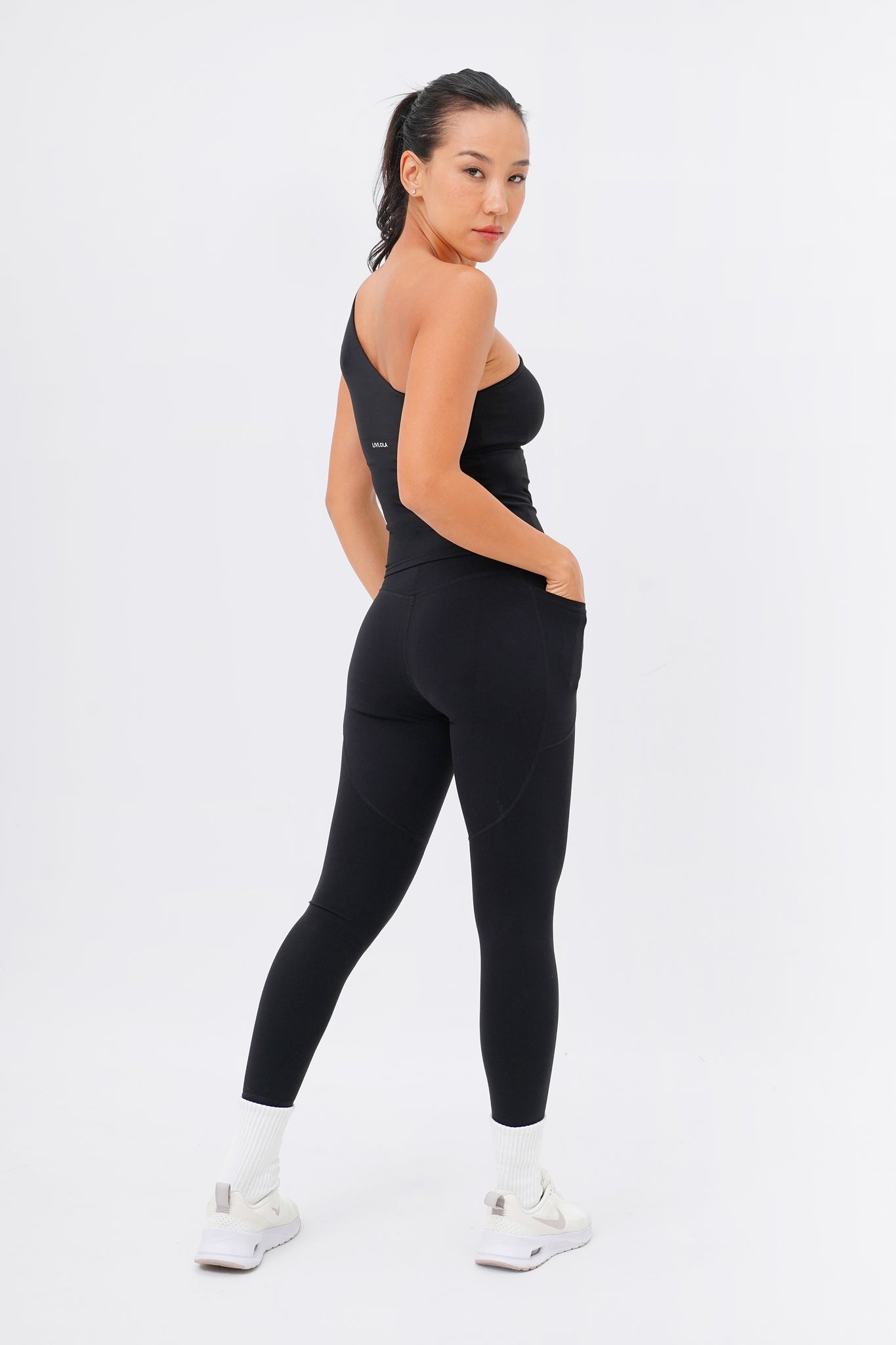 Sporty and sophisticated– meet the trendiest set for your next Pilates session! This seamless, one-shoulder silhouette makes a statement whether you wear it out in a matching set or dressed down for a casual street look. Comes with Sweet Dreamer One Shoulder Bra Tank in light support and Sweet Talker Pocket Leggings that is uber sculpting and compressive. This set is perfect for pilates, hot yoga, hard classes and everyday loungewear.